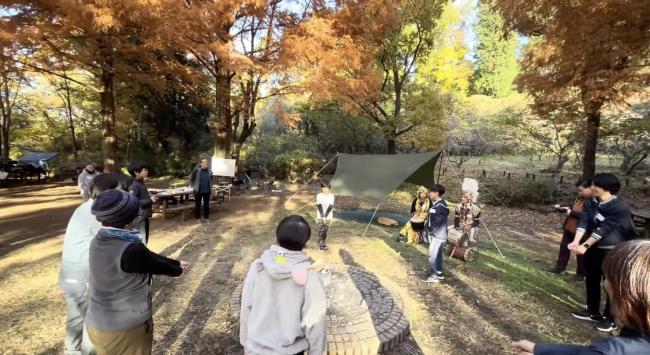 焚き火を囲んで輪になり、まずは鏡のように同じ動きをして気を合わせるワークに挑戦しました。