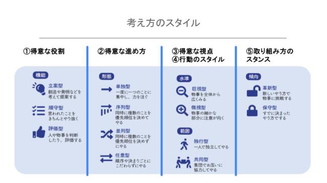 さらに、考え方や行動のスタイルについても見ていきます。全体を見渡して考えるのが得意な人、細かなところに気づきやすい人。一人で集中することで力を発揮する人、誰かと協力することでアイデアが広がる人。新しいやり方に挑戦するのが好きな人、慣れた方法で着実に進めたい人。どれも良し悪しではなく、状況によって活きるスタイルが違うだけです。