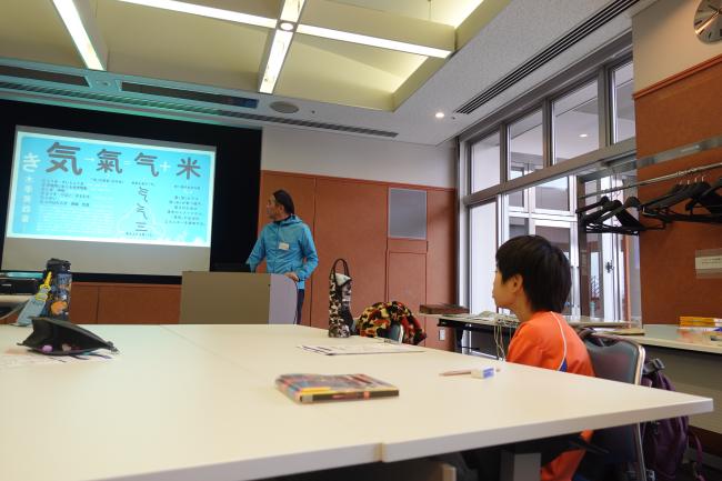 まずはスライドを使って、漢字の「気」のなりたちや意味を教わり、私たちの五感が「気」を感じ取る大切なセンサーであることを学びました。
