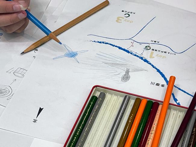 活動後は関戸公民館に戻り、五感で感じた「気」を五感マップに描き出します。