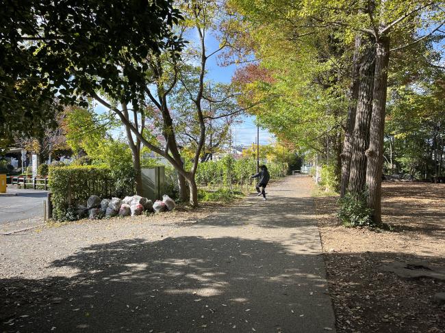 外に出て公園を歩くと、木が並ぶ場所があります。実はそれが、かつて建物が建っていた場所の名残だそうです。