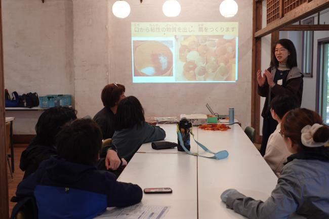 蚕を実際に育てた体験談を交えながら、蚕のお話からスタート。仲田の森蚕糸公園は、かつて旧農林省蚕糸試験場があった場所で、桑ハウスは第一蚕室だったことを教えてもらいました。