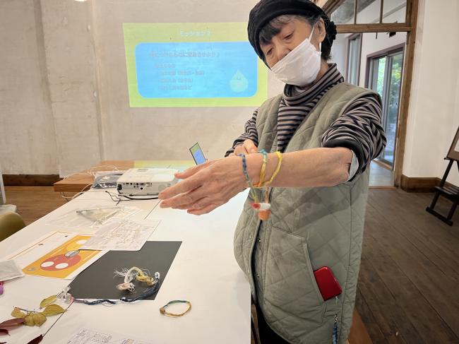 最後は、染め上がった繭玉や糸を使って「変身アイテム」作り。