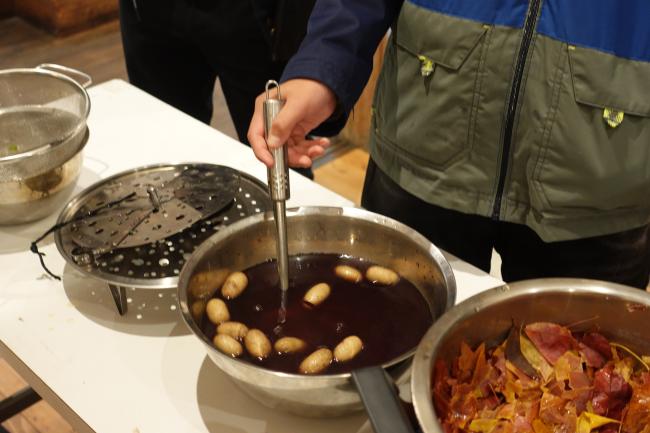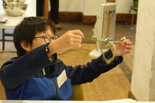 繭玉の色が少しずつ深まっていく様子を見つめながら、自然の色が持つ優しさや奥行きを、子どもたちは感じているようでした。
